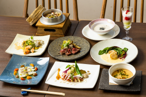 お夕飯は、元フレンチシェフが淡路島の旬をふんだんに使って腕をふるう贅沢なコース。朝は、ごはんがすすむ淡路島の恵みたっぷりの和朝食を。愛犬と離れることなく、お部屋でゆっくりと堪能いただけます。